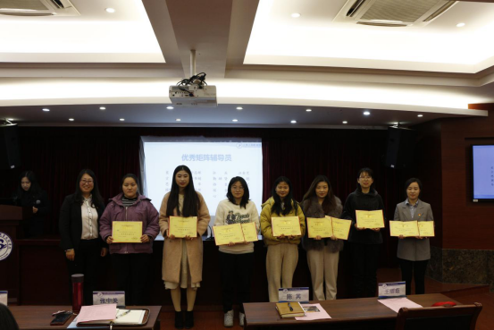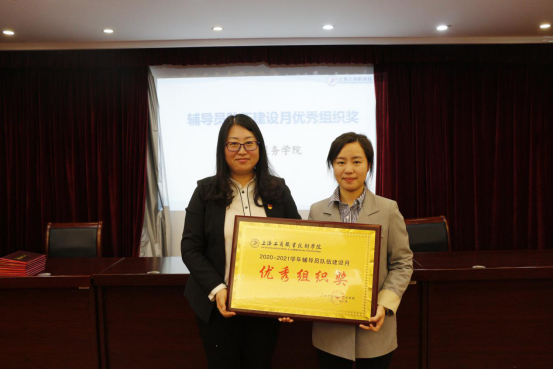 会议第一项,辅导员队伍表彰颁奖。通过表彰在2020-2021学年第一学期辅导员矩阵工作、第五届辅导员职业能力大赛中表现优异的个人和集体,进一步加强学生工作队伍建设,提升辅导员职业化水平。