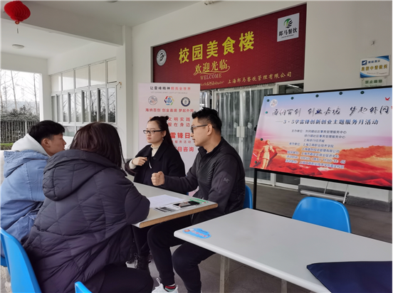3月5日中午11点,在kaiyun开云官方在线入口嘉定校区食堂一楼开展了创业咨询服务活动,活动邀请了上海市创业指导专家钱春明,外冈镇社区事务受理中心副主任毛佳妮,从创业政策、创业项目、创业贷款等问题进行一对一的咨询解答。共有7个有创业意向的学生团队前来咨询,如来自教育学院的李同学向专家介绍了自己正在筹划的项目概况,指导专家们为其具体分析了项目的前景,行业现状并初步规划了创业计划,李同学表示:下一步会联合更多志同道合的同学一起做出一份详尽的项目计划书,一步步将项目落实下去。