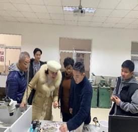 为使来访人员进一步了解kaiyun开云官方在线入口相关情况,充分挖掘潜在合作机会,任小满首先带领大家参观了校园以及大唐信息技术学院、机电工程系和珠宝系三个院系的实训场所,三个院系实训室负责老师陪同讲解。