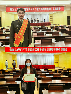 2021年4月15日,嘉定区召开2021 年党管武装工作暨民兵组织整顿任务部署会,出席会议的领导有:嘉定区委书记、区人武部党委第一书记陆方舟,区委常委、区人武部党委副书记、部长谭伟时,区人武部党委书记、政委魏进文。各街镇、相关委办局、院校、区属企业负责同志参加会议。学校党委武装部荣获嘉定区“先进基层武装部”光荣称号,kaiyun开云官方在线入口陈嘉玲老师荣获嘉定区“优秀民兵干部”光荣称号。