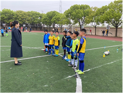 党建结对共建协议签约仪式结束后,支部党员徐俊文、狄永州、崔学洋三位体育教师担任了足球交流赛裁判执法工作,协助足球比赛活动的进行;支部党员接剑桥、潘梅两位思政教师在比赛休息期间为学生讲述了红色故事,播种爱国种子。