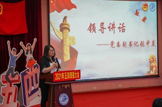 最后,校党委副书记张中美代表学校党委向受表彰的先进集体和个人表示热烈的祝贺,向团学工作付出辛勤劳动的团员青年们表示感谢和慰问。她希望受到表彰的先进集体和个人,再接再厉,锐意进取,在团的各项事业和工作创新中不断取得新的成绩,也希望每位同学能够认真向他们学习,树立争当先进,敢于拼搏,勇于创新的意识,为未来的辉煌打下坚实的基础。并对同学们提出3点要求和希望:一要刻苦学习,树立远大理想;二要爱岗敬业,弘扬奋斗精神;三要开拓创新,丰富活动载体。