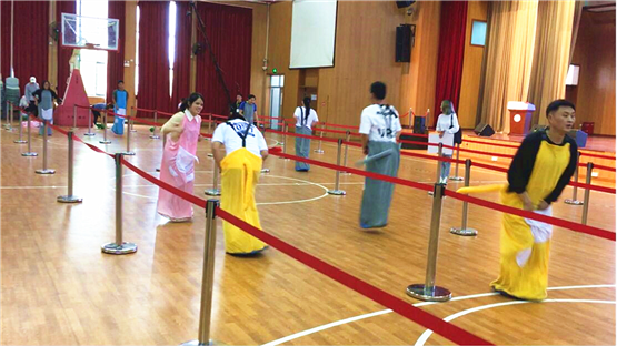 精彩的舞龙和啦啦操开场表演之后,运动员队伍和裁判员队伍入场,本届趣味运动会共有13个代表队,215名教职员工报名参加比赛。