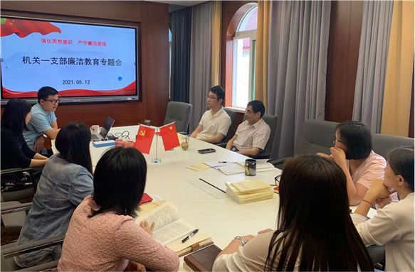 为了进一步强化党员的廉洁意识,筑牢思想道德防线,增强党员拒腐防变的能力,机关一党支部于2021年5月12日下午在行政楼第一会议室组织全体党员召开以“强化思想意识,严守廉洁底线”为主题的廉洁教育专题会。