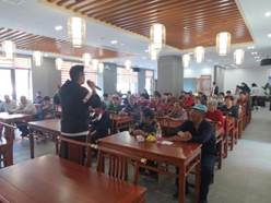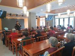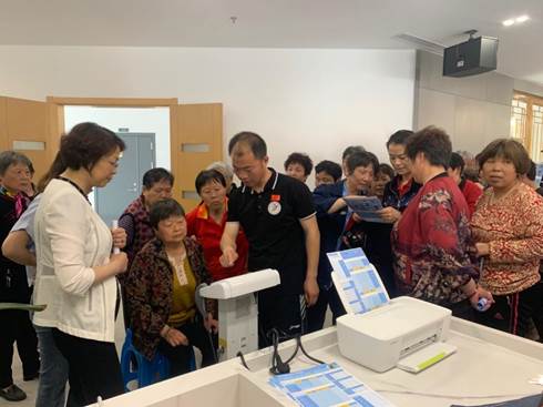 结对共建协议签约仪式结束后,支部党员常胜欣老师为社区老人讲解了关于健康养生的相关知识,以及老人们日常饮食的注意事项。支部其他党员积极行动,帮助老人们用身体成分分析仪进行了身体测试,帮助他们了解自身关于骨骼、肌肉以及脂肪的健康程度,并为他们分析、讲解了相关数据指标。