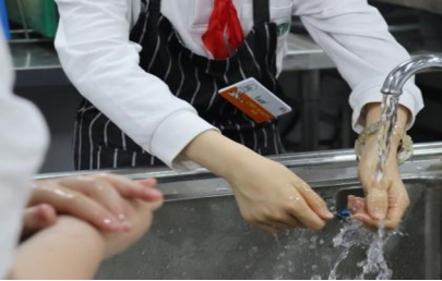 “哇,厨师的卫生标准那么高吗?”“哥哥你洗手洗的那么干净,是不是有些洁癖呀!”面对着近乎严苛的卫生标准,同学们的眼神中皆是充满着惊叹与疑惑。“因为我们做的都是要吃进肚子里的呀,如果不注意卫生,那么吃了你做的食物的小伙伴们就都会生病的。”在指导老师深入浅出的悉心教导解释下,同学们逐渐意识到了食品卫生的重要性,并纷纷开始主动清洁自己的双手,迎接接下来的挑战。