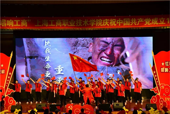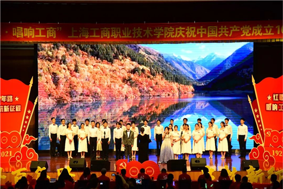 磅礴的气势,激昂的旋律,缤纷的文体中心。红歌会在《奇迹》这一节目的精彩表演中拉开帷幕,寓意着在中国共产党的领导下创造的一个个“中国奇迹”。《打靶归来》《团结就是力量》《保卫黄河》等充满力量、节奏鲜明的歌曲带领观众领略了工商师生的青春活力。《国家》《我爱你中国》《难忘今宵》《唱支山歌给党听》《我和我的祖国》《歌唱祖国》《红旗飘飘》《今天是你的生日》等旋律优美舒缓,自然而生动地呈现了新一代工商人的爱党爱国情怀。《没有共产党就没有新中国》《我们走在大路上》《走向复兴》以独特的合唱方式赋予了歌曲更加生动、更加丰富的表现力,气势恢宏,演唱荡气回肠,很好地讴歌了正值青春的中国共产党,也将演出推向了高潮。120分钟的演出,从深情款款的演唱到充满激情的合唱,风格迥异,多姿多彩的才艺展示让现场气氛非常热烈。