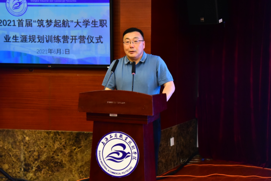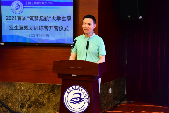 为引导大学生树立正确的世界观、人生观、价值观、就业观,激发学生成长成才的内生动力,不断增强职业生涯规划素养,帮助学生更清楚地认识自己、更科学地规划自己的职业生涯,制定更合理的职业生涯规划路径。2021年6月1日上海工商职业技术学院筑梦起航——大学生职业生涯规划训练营开营仪式在嘉定校区北楼报告厅成功举行。出席本次活动的有:学校副校长王中强、嘉定区就业促进中心副主任庄坚萍、嘉定区就业促进中心职介科科长叶本喜、外冈镇社区事务受理服务中心副主任毛佳妮、行业专家、各院系生涯工作室负责人、指导老师等。招生就业办公室主任张萍主持本次仪式。
