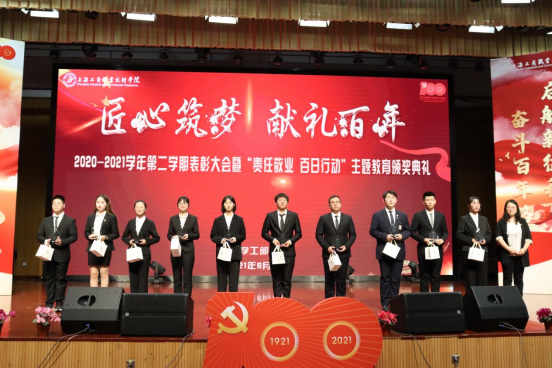 本次表彰大会以“匠心筑梦,献礼百年”为主题,旨在鼓励先进,树立典型,让优秀学生的先进事迹和成功经验引领全校学生共同成长,引导全体工商学子听党话、跟党走,在实现中国梦的实践中放飞青春梦想,携手迈向新征程,共谱工商新华章!
