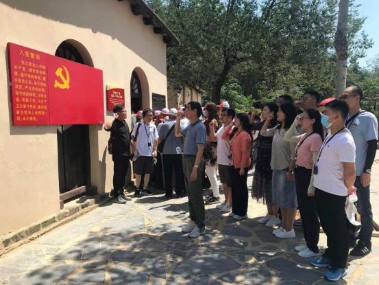 时序更替,梦想前行,走得再远都不能忘记来时的路。为贯彻习近平总书记在庆祝中国共产党成立100周年大会上的重要讲话精神,进一步深化党史学习教育,进一步坚定理想信念、强化党性修养,激发全体教师的干事创业热情。7月3日,由9名党员、2名民进会员、1名民盟盟员组成的教师队伍在校长陈英南的带领下,奔赴革命圣地西柏坡开展“寻访红色基地,传承红色精神”的党史主题教育活动。
