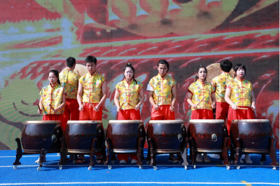 大学生艺术团带来的鼓舞表演《金鼓齐鸣 龙腾盛世》拉开典礼的序幕,随后通过一段视频回顾了新生入学以来的点点滴滴。
