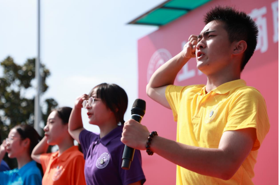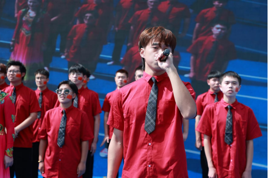 典礼的最后,机电工程系学生代表带领全场师生合唱《国家》,激情高昂的歌声回响在体育场上空,师生挥舞手中国旗,将开学典礼推向最高潮。全体师生在歌声中弘壮志、铸梦想,共同祝愿我们伟大的祖国繁荣昌盛,学校事业发展蒸蒸日上!