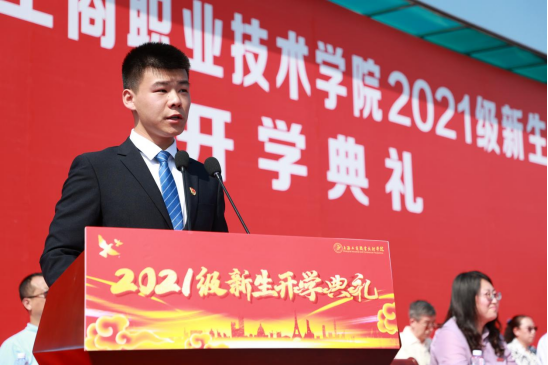 艺术设计系贾艺闻作为新生代表发言。她号召所有同学要志存高远,也要脚踏实地;要精深钻研,也要通识博雅;要修身自省,也要担当使命。在党的光辉沐浴下、在党的教育方针呵护下,在工商这片育人的沃土之上,奋发学习、历练成长,创造属于自己的灿烂未来,助力中国的锦绣之梦!