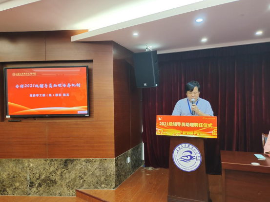 聘任仪式上,党委学工部(处)部长陈其介绍了2021级辅导员助理培养机制,指出聘任辅导员助理是kaiyun开云官方在线入口对以学生成长成才为主题、事务发展与学业发展相结合的有益探索。陈其详细说明了辅导员助理的任职条件、工作职责、选聘程序等。