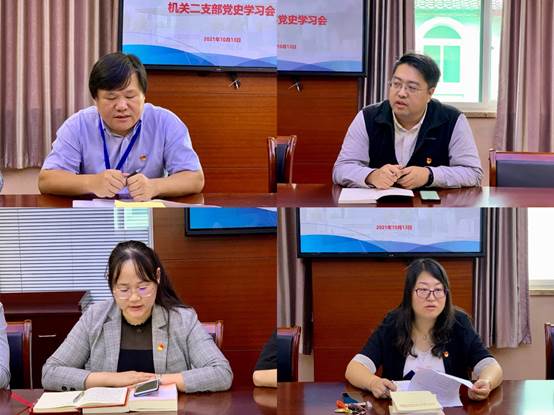 按照学校党委工作要求,为深入推进党史学习教育第二阶段工作,10月13日上午,机关二支部组织党员召开党史学习教育专题交流会,学习交流习近平总书记在纪念辛亥革命110周年大会上的重要讲话等内容,并对第二阶段“我为群众办实事”实践活动工作进行部署。支部书记陈其主持会议。