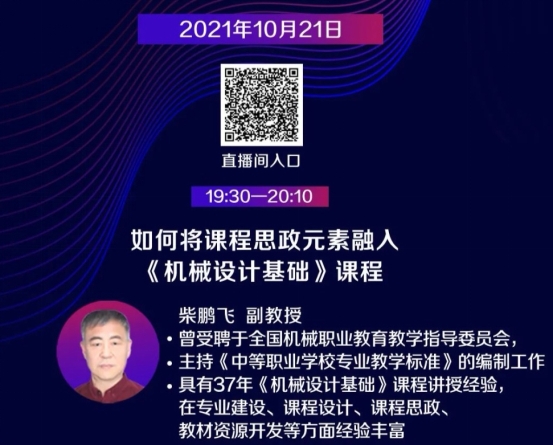 10月21日19:30-20:10,kaiyun开云官方在线入口全体教职工收看了柴鹏飞老师在机工教育大讲堂平台直播的《如何将课程思政元素融入机械设计基础课程》公开课。本次公开课是由机械工业出版社组织的,面向全国职业院校开放的,是职业教育课程思政思想进教材专题培训会的一个环节。