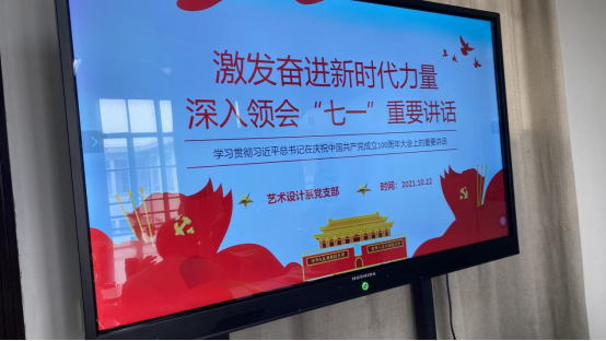 10月22日下午,艺术设计系党支部在28号楼404室开展“激发奋进新时代力量”学习会,学习贯彻习近平总书记在庆祝中国共产党成立100周年大会上的重要讲话,同时和《中国共产党普通高等学校基层组织工作条例》与党史学习教育相结合,各级党组织要坚持和加强党的全面领导,切实扛起全面从严治党主体责任,推动基层党建与事业发展深度融合,以高质量党建引领保障学校各项事业高质量发展。会议由党支部书记张建芳主持,全体党员教师参加了会议。