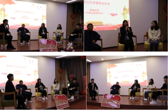 在半围式高峰论谈环节,主持人就如何发挥班干部在班级管理中的作用对几位辅导员协会理事进行访谈提问。大家在探讨中一致认为,学生管理工作要采取民主与集中相结合的方式,充分调动班干部的工作积极性;没有规矩不成方圆,要利用好《学生手册》,严格按照规章制度办事,并做好资料的存档等等这些宝贵经验,对于其他辅导员今后开展学生工作都起到了切实有效的帮助作用。