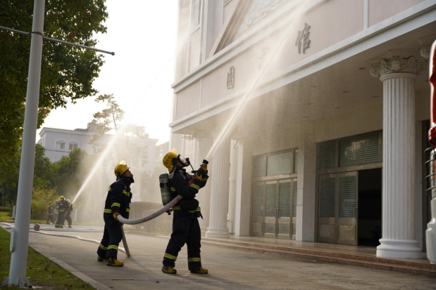 本次演习主要包括两个部分的内容:第一部分,沉浸式安全教育实践;第二部分,实景应急疏散演习。