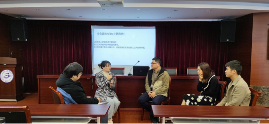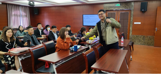 在培训的后半场,董老师邀请四位辅导员进行一次合作对话的演示,辅导员们通过对话讲述自己工作中遇到的学生难题,在自然的对话流动中找到了问题解决的办法,也帮助大家进一步理解如何在实际工作中进行合作对话以及对话的意义。