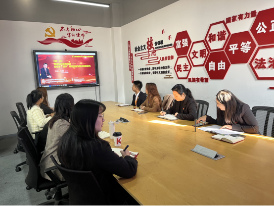 朱燕在集体学习之前强调,学习贯彻党的十九届六中全会精神将作为当前理论武装的重中之重,也将作为党史学习教育的重要内容,努力把落实全会精神和支部重点工作相结合,以“我为群众办实事”为主线,充分发挥党支部的战斗堡垒作用,不断凝聚人心、统一思想。随后带领党支部全体成员观看由上海民办高校干部和党员研修基地举办的党的十九届六中全会精神专题学习讲座。