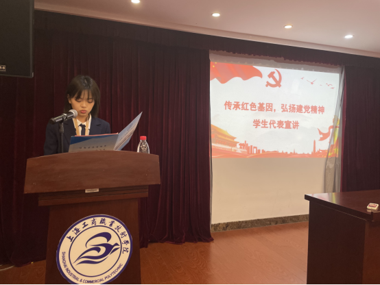 会议最后,由优秀学生代表做发言。设计与制作201班邵嘉怡同学通过思政课联动建设的实践学习深刻体会到“伟大建党精神,是中国共产党先驱在20世纪20年代探索救国救民道路中创造的宝贵精神财富,是马克思主义基本原理同中国具体实际相结合、同中华优秀传统文化相结合产生的宝贵精神财富,凝聚着中国共产党人的初心和使命”。会计206班夏文杰同学谨记习近平总书记的嘱托“未来属于青年,希望寄予青年”,立志以实现中华民族伟大复兴为己任,主动承担起时代赋予我们的使命和责任,不负时代,不负韶华,不负党和人民的殷切期望!用自己在青年时期的大好时光苦练本领,用实际行动感召更多青年人投身国家发展。