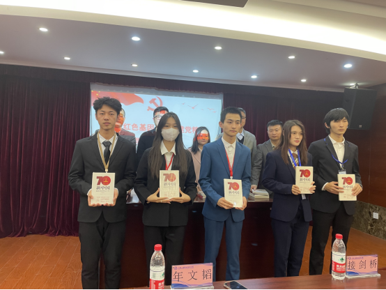 然后,举行了“学子授书仪式”。为提升新时代青年学子的时代使命感和历史责任感,本次总结会选取了具有代表性的经典书目和“四史”解读类书籍授予学生代表,让青年大学生从书籍的世界里更好地学习和掌握解读党史、新中国史、改革开放史、社会主义发展史的事实和理论依据。在学生时代牢固树立爱国、爱党、爱社会主义的新时代青年形象,激励大学生将个人职业目标、人生理想与国家和民族的需要紧密结合,时刻在自己的学习和生活上发挥先进模范作用。