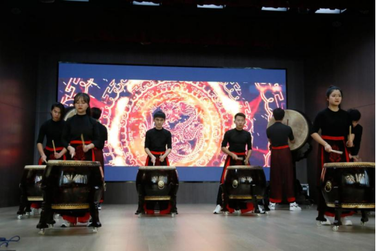极具民族特色的乐器,极富动感节奏的乐风,奏出民族传统乐器的独特魅力。商务与管理系陆怡、葛中楠,教育学院尹懋婧,机电工程系程民文、阙旭辉,汽车工程系刘雨乐、周超、陈煜廷同学带来的舞龙开场表演震撼全场。