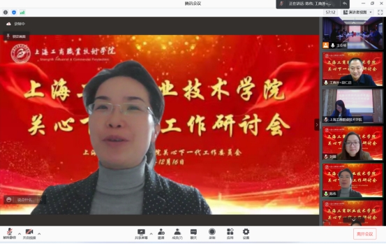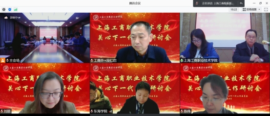 上海工商外国语职业学院关工委副主任、党委副书记、副校长段仁启就完善组织机构,健全管理制度;强化思想引导,关心青年成长两个方面,分享了关心下一代工作内容。通过开展学生教育引导、关爱帮扶活动,实施理想信念、思想道德和革命传统教育,引导他们树立正确的世界观、人生观、价值观,为学生健康成长提供了有力保障。