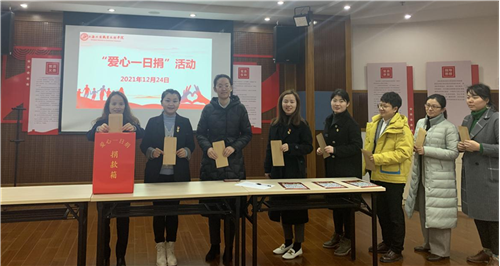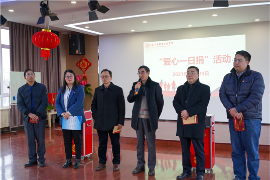 扶危济困、乐善好施是中华民族的传统美德。为进一步体现教职工互帮互助的奉献和关爱精神,提高对困难教职工的帮扶力度,为因重大疾病、遭受重大意外事故等原因造成经济生活困难的教职工提供帮助。经学校党政倡议、有关部门配合、学校工会筹备实施,于12月24日在嘉定校区举办了“爱心一日捐”活动启动仪式,青浦校区通过视频连线参加。