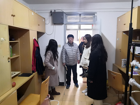 走进学生宿舍,检查学生宿舍用电、用水安全。叮嘱同学们,在疫情防控依然严峻的形势下,时刻做好防护,注意防寒保暖,树立安全意识。