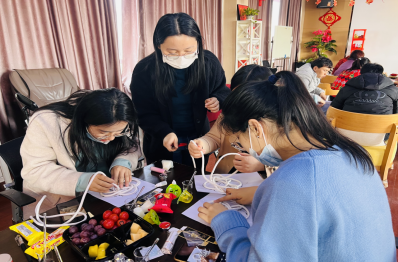嘉定校区珠宝系肖瑶、刘元元老师带领大家手工制作杯垫,进行活动前暖场,
