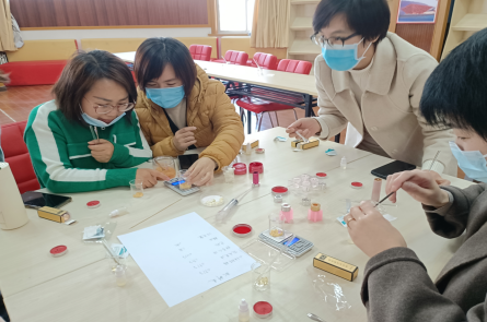 在轻松愉快的氛围中,女老师们挑选色号,调配精油,有条不紊地消毒、加色粉、加蜂蜡,而后加热、罐装、凝固,认真地制作自己的专属口红。30分钟后,当口红脱模完成,装进精心挑选的口红盒的那一刻,女教师们纷纷惊叹原来做口红是如此简单而又有成就感。