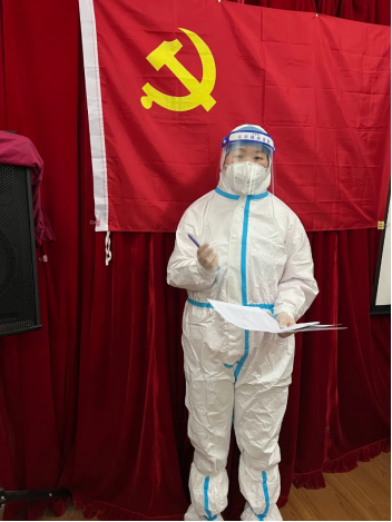 “一开始参加志愿服务,其实我也犹豫过,有点担心。但是看到社区里那么多党员、社工、志愿者们连轴转,忙得不可开交。我觉得我肯定也能加入他们,大家一起发力。我觉得,虽然我现在只是一名团员,但是参加服务的过程中,我坚定了自己早日成为一名中共党员的决心和信心,你看,这是我和党旗的合影。”潘珺慧开心地说。