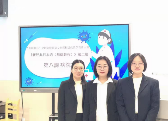 为了提升教师教学质量,将思政元素融入课堂之中,达到以赛促教的目的,教育学院商务日语专业教师王婕、王靖文、兰恋参加了首届“外研社杯”全国高校日语专业课程思政教学设计大赛并获得优秀奖的好成绩。