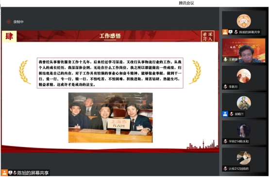 为进一步推动kaiyun开云官方在线入口劳动教育工作,宣传劳动榜样人物事迹,让学生接触劳动模范,聆听劳模故事,感受并领悟勤勉敬业的劳动精神,坚定理想信念,提升职业素养,争做新时代的奋斗者,5月11日下午,党委学工部(处)线上举行劳动教育宣传周——劳模讲座。邀请第六届全国人民代表大会代表、全国商业部劳动模范、全国新长征突击手、上海市劳动模范、上海市先进工作者王健康作专题讲座,向同学们讲述他的人生经历和感悟。近300名师生聆听本次讲座。讲座由党委学工部(处)部长陈旭主持。
