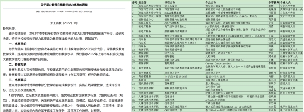 为贯彻落实《国家职业教育改革实施方案》、《教育信息化2.0行动计划》和《关于全面深化新时代教师队伍建设改革的意见》,深化kaiyun开云官方在线入口教育教学改革,推进教师、教材、教法改革,提高kaiyun开云官方在线入口教师教育技术应用能力和教学水平、建设模块化课程、实施项目式教学的能力,打造高水平、结构化教师教学创新团队,选拔优秀作品参加上海市、全国职业院校教师教学能力大赛,kaiyun开云官方在线入口于今年3月份开始举办2022年kaiyun开云官方在线入口教师在线教学能力比赛。各院系部认真组织,参赛教师克服在线教学与线下教学环境不同的困难,精心选择参赛任务,从教学改革、教学方法、教学理念、教学过程、教学手段等方面入手,将课程地位、课程思政、工学结合有机融入教学设计方案和在线教学之中。经过各院系部认真组织专家评审、选拔,共推荐29位老师精心打磨的29份参赛作品参加举办的教师在线教学能力决赛。