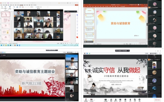 诚信明礼·助学育人。在线上教学的特殊时期,辅导员利用腾讯会议、学习通APP等软件召开主题班会。通过用PPT和视频详细介绍了国家、上海市及kaiyun开云官方在线入口的资助政策,宣传推广精准资助和资助育人实施要点,重点针对生源地助学贷款、国家励志奖学金、国家助学金、勤工助学等相关内容进行解读,同时针对毕业班的学生普及了银行征信、金融等相关知识,引导学生树立诚信意识,培养学生的社会责任感和自立自强的优秀品质。