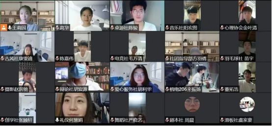 团委书记谢猛作总结发言。他充分肯定了本学期学生社团的工作,通过指导老师、负责人以及校团委社团指导部的共同努力,实现了从线下到线上的模式转变,积极探索,开展了一系列有吸引力、感染力、影响力的活动。谢猛还针对各学生社团在工作中出现的问题分别提供了具体建议和解决途径,同时,结合习近平在庆祝中国共产主义青年团成立100周年大会上的重要讲话精神,指出:广大学生社团骨干要牢记习近平总书记的嘱托,“有责任有担当,我们的青春才会闪光。”学生社团骨干要认真履职尽责,练就过硬本领,积极号召社团成员参与到校园疫情防控工作中去,带头树立良好学风、考风,加强学习,不断锤炼意志力、坚忍力、自制力,努力成长为有理想、敢担当、能吃苦、肯奋斗的新时代好青年。