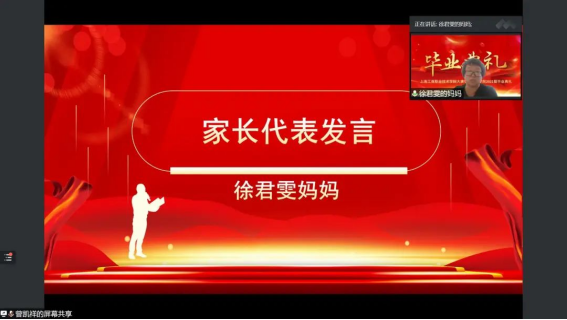 物联网应用技术191班徐君雯家长徐敏霞祝愿学校能够越来越好,祝愿各位老师们工作顺利,祝愿毕业生们前程似锦;首饰设计与工艺193班王钦瑶家长王旭寅对学校表示感谢,祝福所有的毕业生们都有着一份美好的未来;会计195班董广莹家长董志良表达了对校系两级领导和老师的深深谢意,并希望毕业班同学们饮水思源,勿忘师恩,脚踏实地,在实现中华民族伟大复兴的“接力赛”中跑出好成绩;机器人192班衣鸣霄家长姜小敏表示大学三年时间她欣喜地看到孩子的一步步成长,获得多个奖项,综合素质得到了极大的提升,衷心感谢学校领导和老师们的辛勤付出和精心的培育。