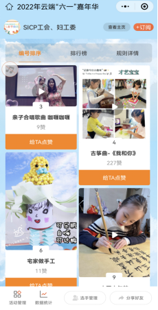 为庆祝2022年“六一”国际儿童节的到来,给学校教职工子女营造一个欢乐、有意义的节日,学校工会、妇工委于6月上旬举办云端“六一”嘉年华活动,引导宝贝们养成体育锻炼和科学防疫的良好习惯,展示才艺展现魅力,表现出朝气蓬勃、自信乐观、挑战自我的精神风貌。活动分为宝贝运动秀、宝贝魅力秀、宝贝才艺秀三大类。