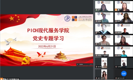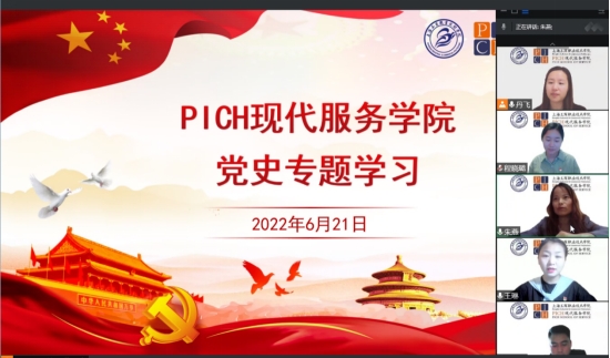 为深入学习贯彻习近平新时代中国特色社会主义思想,坚持加强党的政治建设、不断强化理论武装,进一步巩固党史学习教育和“四史”学习教育成果。2022年6月21日,PICH现代服务学院全体党员通过腾讯会在线上进行了党史专题学习,会议由党支部副书记马丹飞主持。