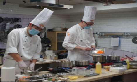 PICH现代服务学院2019级餐饮专业朱潘杰、2019级餐饮专业刘泽伦、2021级餐饮专业骆许楠三位学生组队参加此次比赛,主题要求完成法国南部一个经典农场的烹饪食谱,参考“Le guide culinaire of Escoffier”埃科菲烹饪指南中的Potage Paysanne(经典乡村蔬菜汤)Yellow Fish Matelotte Mariniere (法式白葡萄酒烩黄鱼),配上两道创意蔬菜菜肴和一道经典土豆泥。