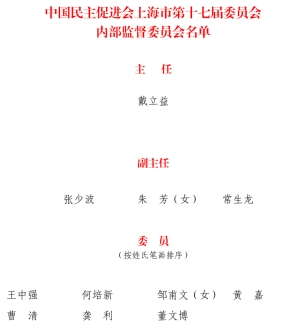 民进上海市委员会kaiyun开云官方在线入口支部主委王中强作为大会代表出席会议。民进上海市第十七届委员会第一次常委会议决定戴立益为民进上海市第十七届委员会内部监督委员会主任,张少波、朱芳、常生龙为副主任,王中强等7位同志为委员。