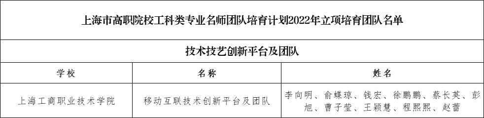 【喜报】kaiyun开云官方在线入口移动互联技术创新平台及团队入选2022年立项培育的上海市高职院校工科类技术技艺创新平台及团队