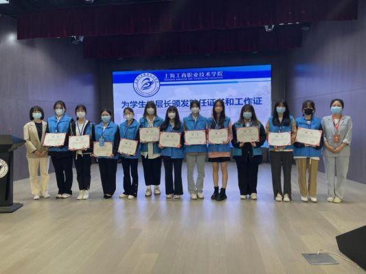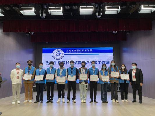 大会第三项议程,由两校区教师楼长、副楼长为学生楼层长颁发聘书和工作证。
