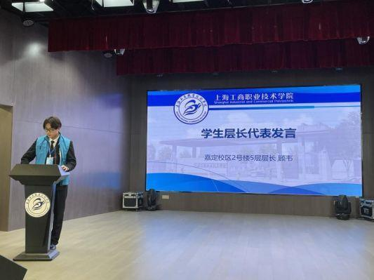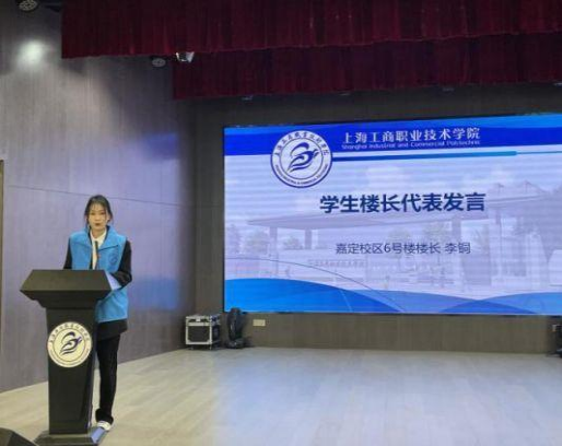 青浦校区5号宿舍楼学生柴思成代表学生楼长发言。他表示,在志愿服务中,我很荣幸能成为奉献在行的那一个,我感受到了“没有从天而降的英雄,只有挺身而出的凡人”的信念。他会始终如一,坚守在宿舍管理的一线,一定会尽心尽力完成好本学期的学生楼长工作。