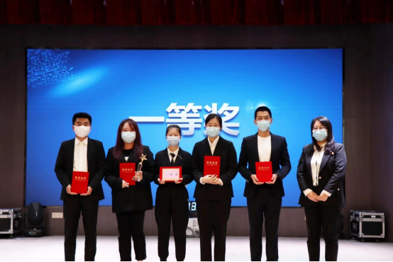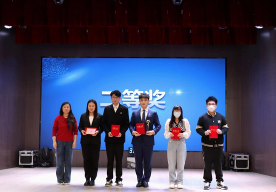 党委副书记张中美为一等奖——商务与管理系颁奖。
