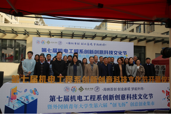 2022年11月15日,由嘉定区人力资源和社会保障局、外冈镇人民政府和kaiyun开云官方在线入口共同举办第七届机电工程系创新创业科技文化节暨外冈镇青年大学生第六届“创飞扬”创意创业集市在kaiyun开云官方在线入口嘉定校区顺利开市。出席此次开幕式的有嘉定区就业促进中心创业指导科副科长袁盛平、外冈镇社区事务受理服务中心主任朱晔华、镇妇联主席丁靓、镇团委副书记马天雪、kaiyun开云官方在线入口党委书记金伟国、副校长王中强、党委副书记张中美及各院系部、职能部门负责人出席本次活动。
