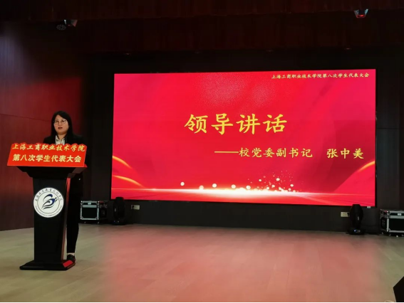 校党委副书记张中美代表学校党委向本次学生代表大会的顺利召开表示热烈的祝贺!向到场的兄弟院校学生会代表和在座的全体学生代表以及全校青年学生致以最诚挚的问候!她充分肯定了第七届学生会过去一年来的成绩,并表示:没有等出来的辉煌只有干出来的精彩,作为全面建设社会主义现代化国家新征程的实践者,希望大家奋发有为、勇毅笃行、接续奋斗、乘势而上,做一名有理想、敢担当、能吃苦、肯奋斗的新时代好青年。同时对即将产生的新一届主席团提出四点希望:一要向“上”生长,打造一心向党的组织;二要向“下”扎根,培养一往无前的队伍;三要向“内”探索,锤炼一身正气的骨干;四要向“外”发力,构成一以贯之的桥梁。